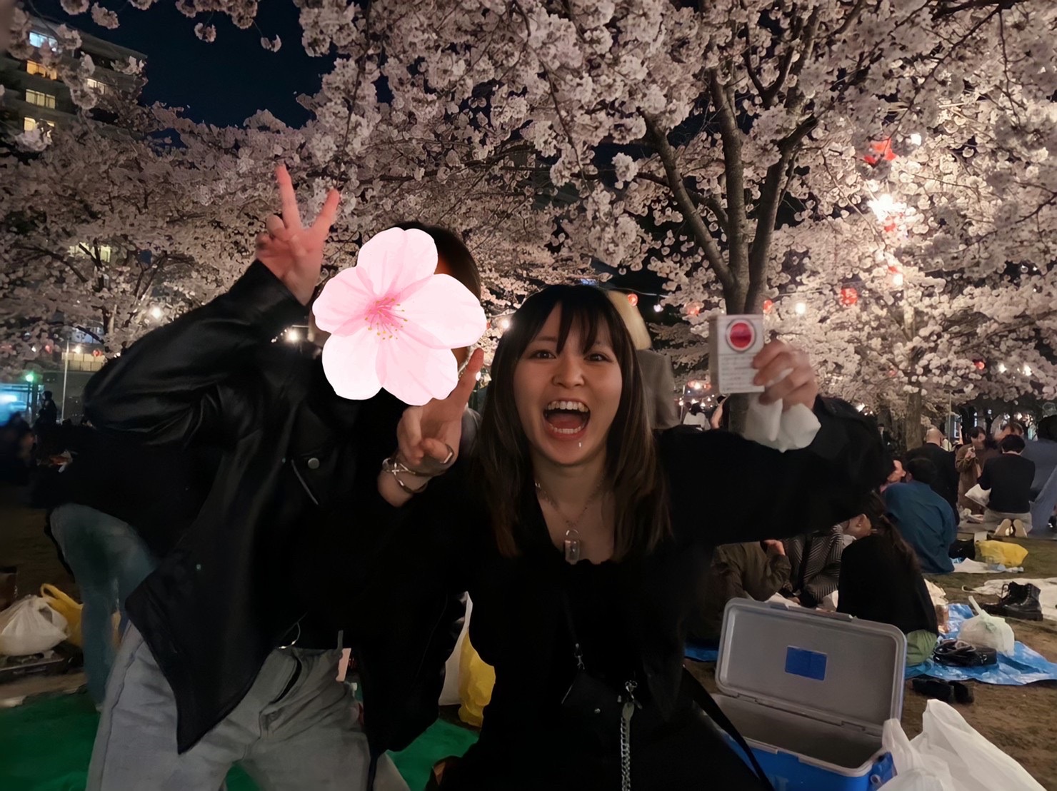 店長の場所取りのおかげで絶景ポイントから桜を見ることができました